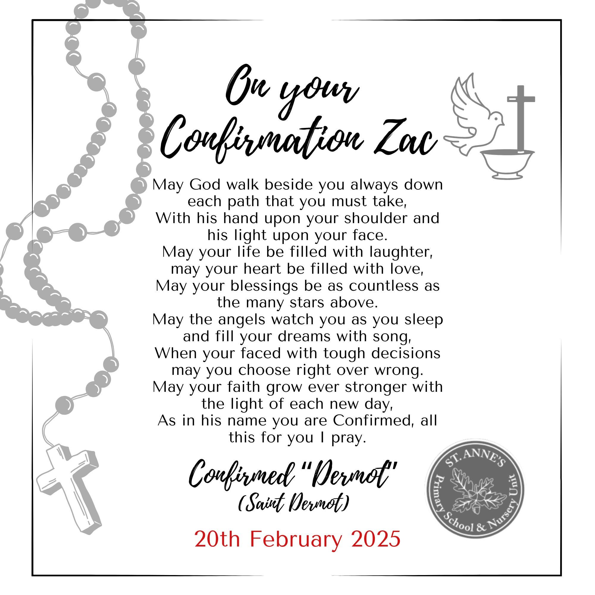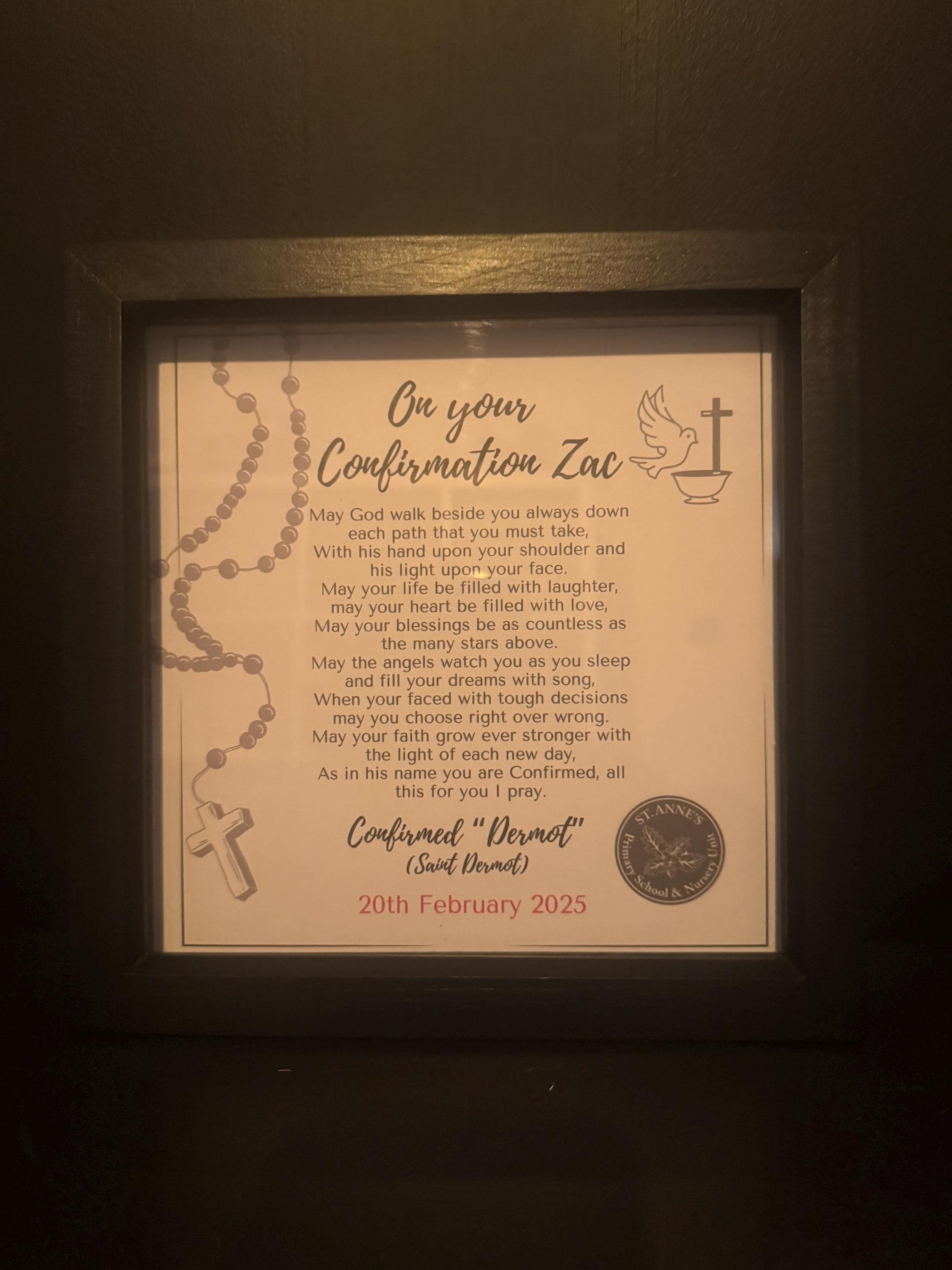 Personalised Confirmation Box Frame- perfect to store confirmation badge etc in. Personalised gift