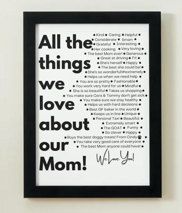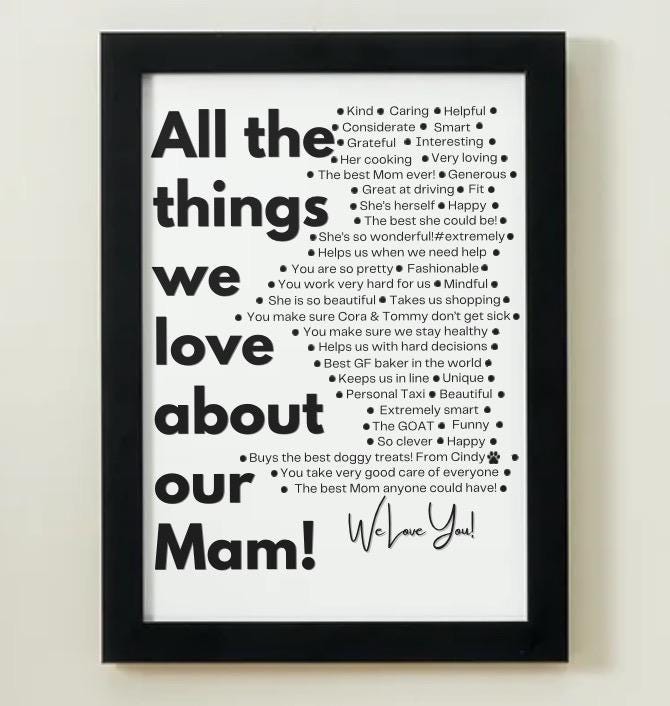 Made to Order Custom Print.*Send list of things you want included.Professionally printed on a4 card and framed in a beautiful a3 frame with double b/w border.