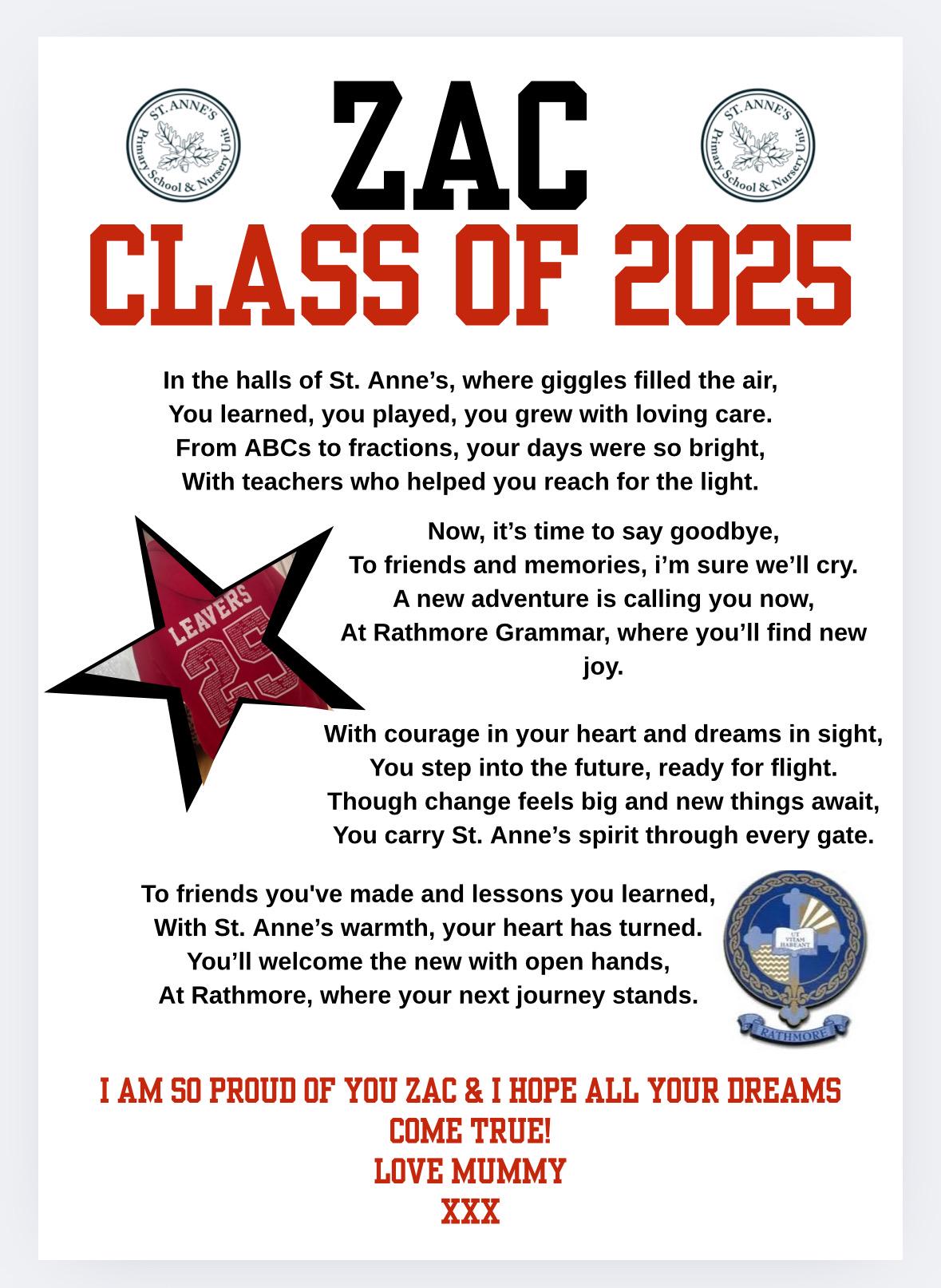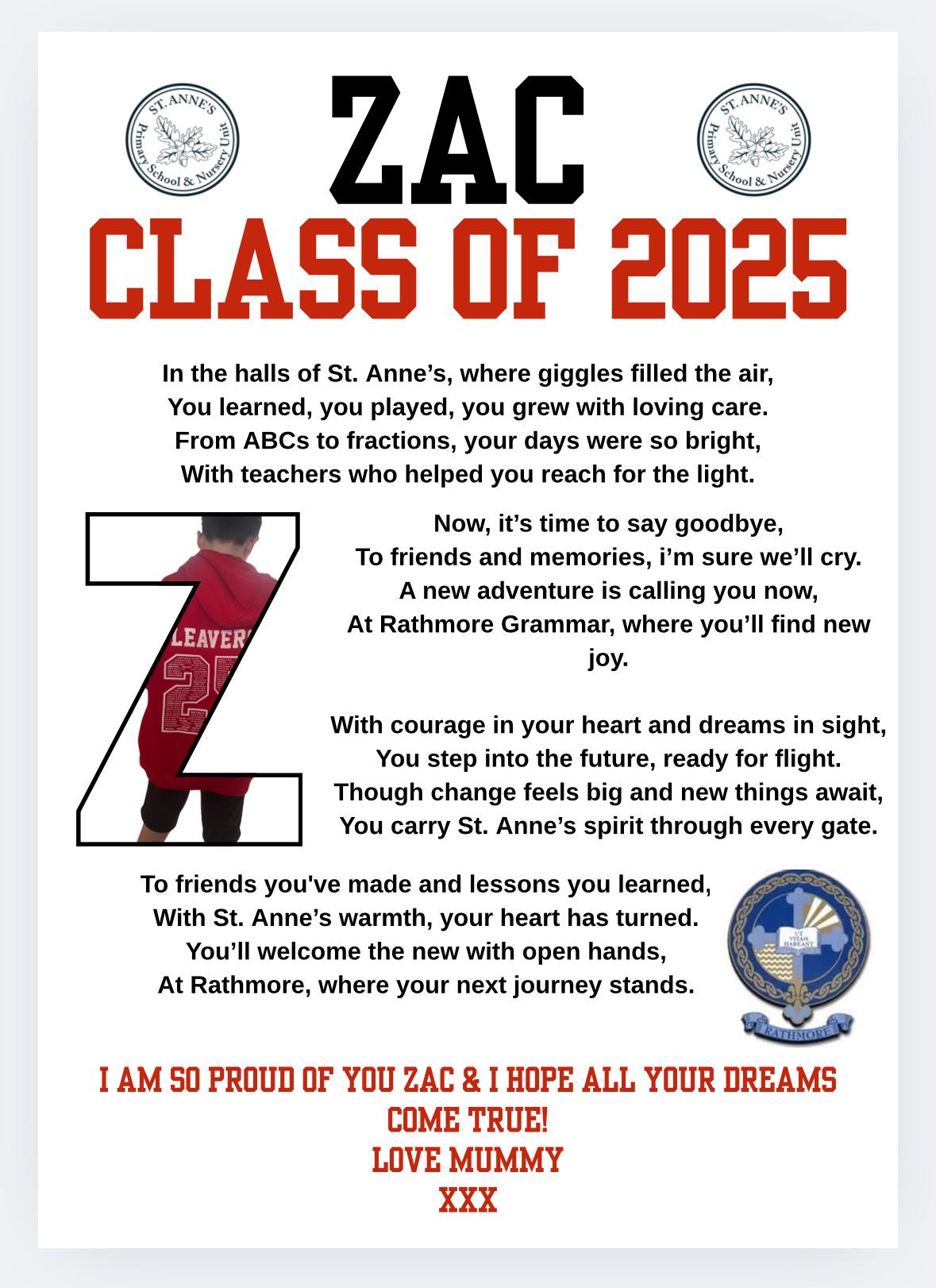 🎒 Optional photo of their leavers hoodie