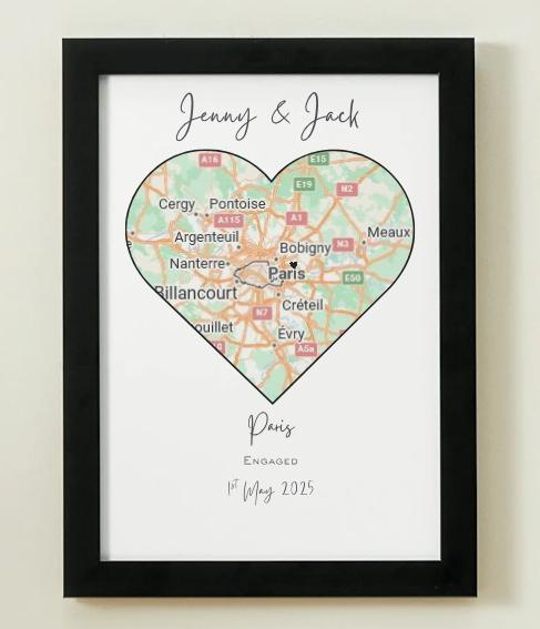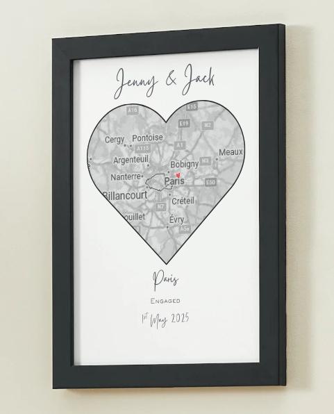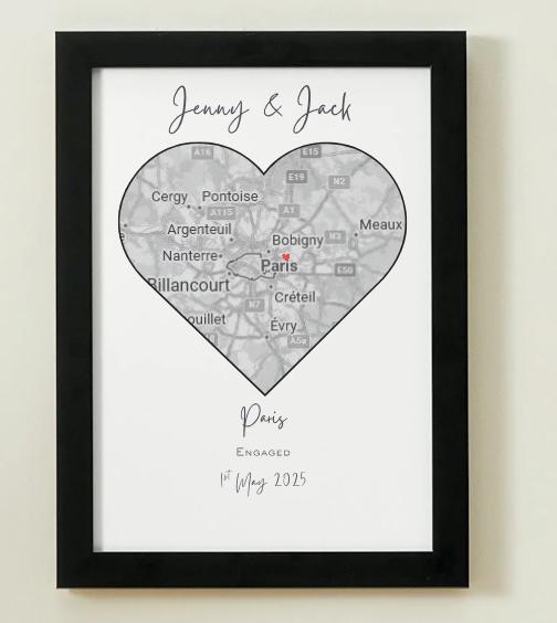 A timeless and elegant personalised print featuring your chosen names joined with a brush stroke heart. Perfect for wedding, engagement, anniversary gifts!Frame not included